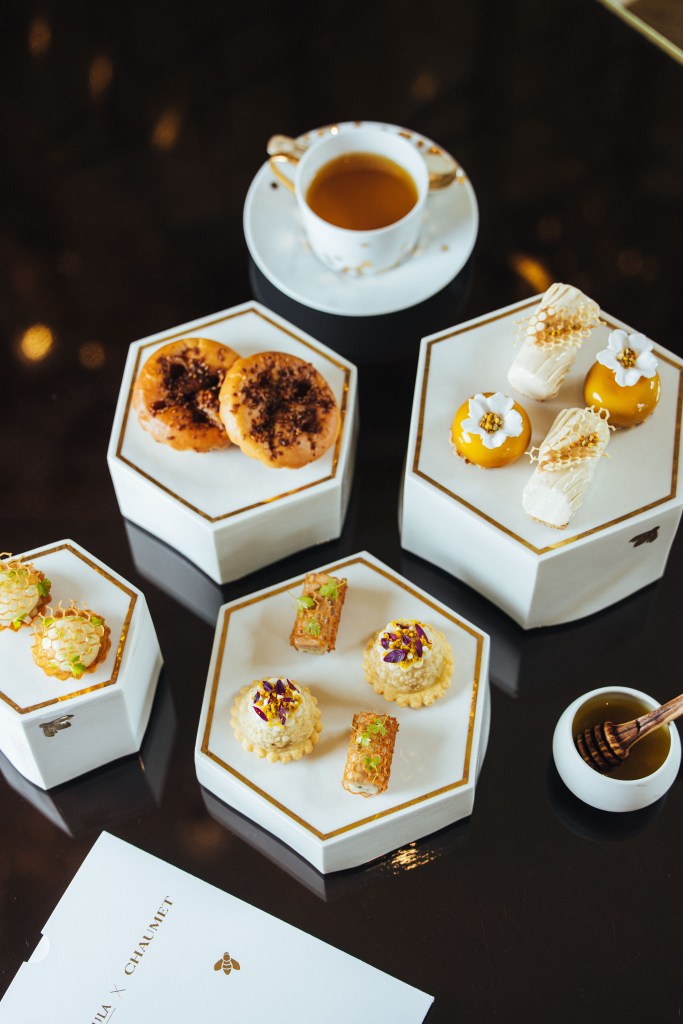 Inspirándose en las colmenas de abejas situadas en la azotea del hotel parisino, Anne Coruble, la talentosa chef pastelera del Peninsula, ha ideado una merienda que combina alta pastelería y alta joyería.