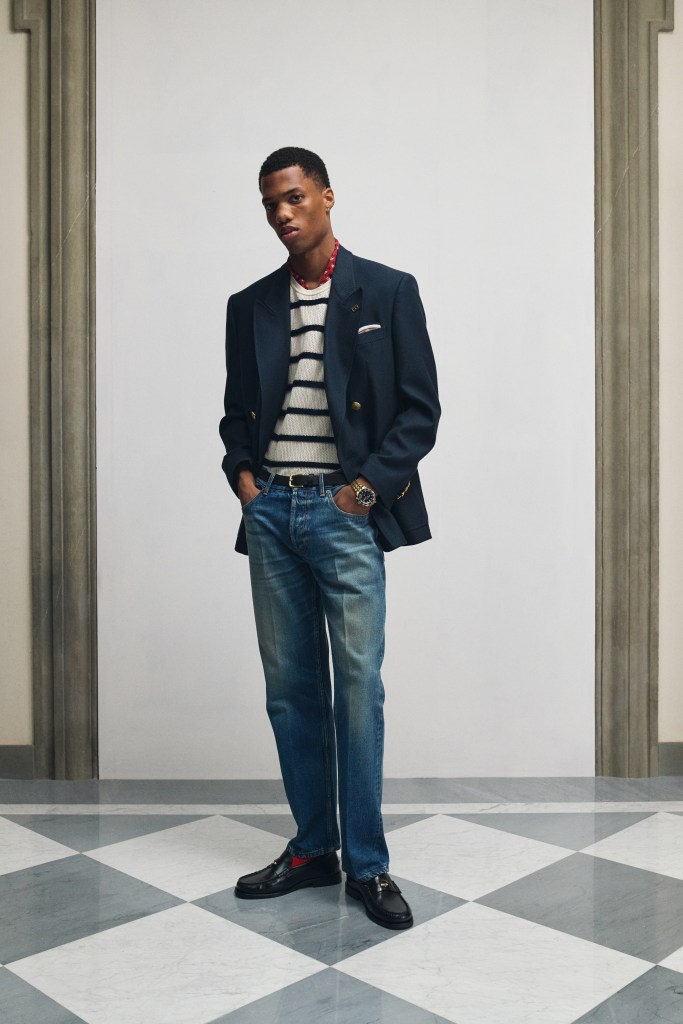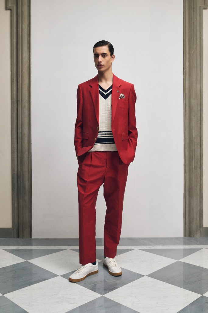 Los cortes son relajados y de estructura suave; las versiones modernas de trajes combinan blazers de cuadros Príncipe de Gales con shorts de corte relajado. Los abrigos deportivos casuales se llevan con vaqueros desenfadados; un blazer teñido en rojo Tommy se superpone a un jersey de cricket reinventado, enmarcando las capas del clásico prep con una nueva vitalidad.