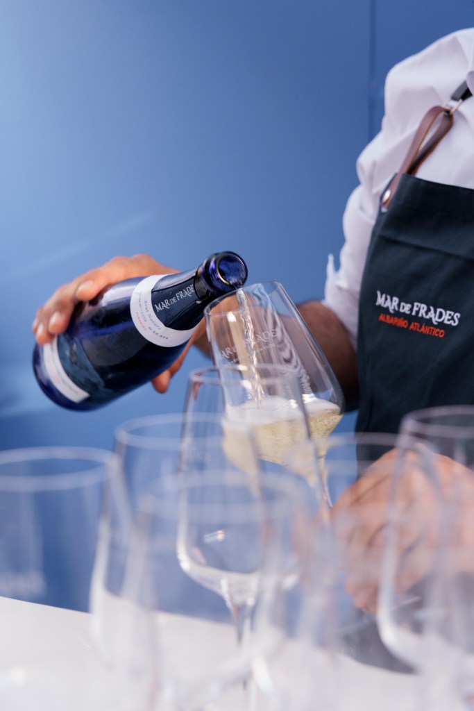 La cita comenzó en la terraza del palacio, convertida en un auténtico mirador oceánico, donde los asistentes brindaron con copas heladas de Mar de Frades, acompañadas de bocados que sabían a norte: conservas gourmet, patatas Bonilla a la Vista y una atmósfera que evocaba el frescor de la costa gallega.