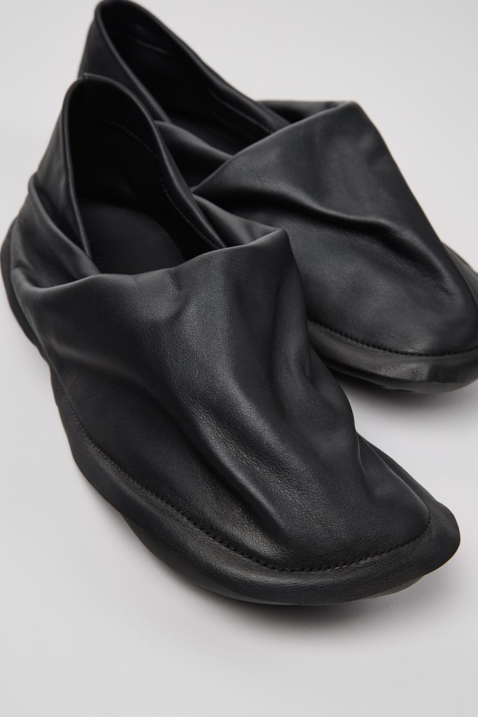 Suaves, flexibles y maleables, todas las piezas de cuero provienen de curtidurías italianas de primera calidad. La combinación de una plantilla de PU (poliuretano) y una suela compuesta por un 20% de TPU (poliuretano termoplástico) reciclado ofrece mayor comodidad y reduce el impacto ambiental. Están disponibles en cuatro colores, que van desde el negro y blanco neutros hasta el azul Klein y el característico tono rojo de Camper.