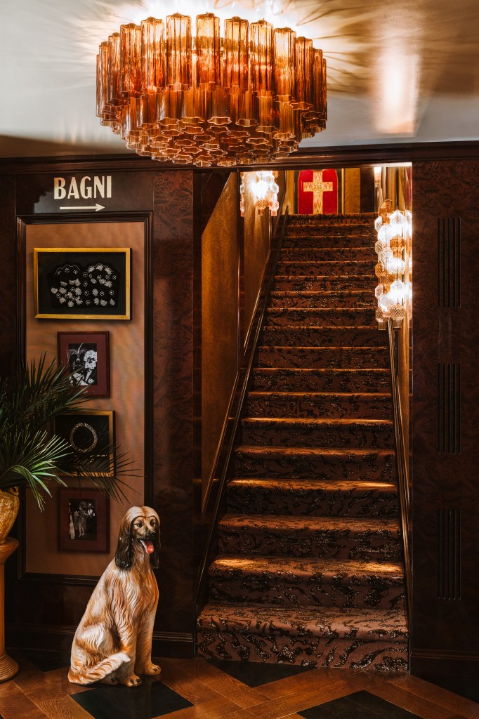 El diseño del espacio ha sido concebido por Studio Kiki, el estudio de interiorismo interno de Big Mamma. Inspirado en la opulencia italiana de los años 70, el proyecto combina referencias a la cultura milanesa y al arte clásico italiano. Con profusión de detalles decorativos y un marcado estilo maximalista, destacan algunos elementos como columnas altísimas de espejo, colosaleslámparas de 400 kg de peso fabricadas en Murano, alfombras diseñadas a medida y piezas vintage de colección, que convierten cada rincón en una declaración de intenciones.