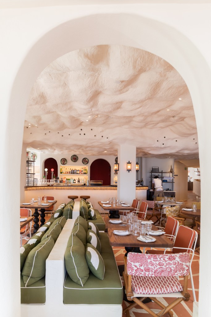 El interiorismo, realizado en su día por el estudio Quintana Partners, ha querido mantener el espíritu de casa costera que caracterizaba al edificio y negocio anterior. La inspiración del espacio ha sido la de recuperar la esencia de naturalidad frente el mar reflejando el “art de vivre” veraniego en el cual todo está pensado para disfrutar y pasar unos días de relax.