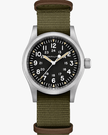 Un reloj que conjuga el arrojo de la milicia con la robustez de un titán. Este Hamilton Khaki Field Mechanical se erige como el aliado perfecto para el espíritu aventurero, ese que busca en cada jornada la emoción de lo inexplorado. Su movimiento mecánico de cuerda manual es un tributo al arte relojero en su forma más pura, mientras que el cristal de zafiro y la caja de acero inoxidable son un baluarte frente a los rigores de la naturaleza.