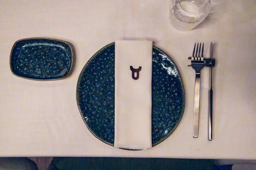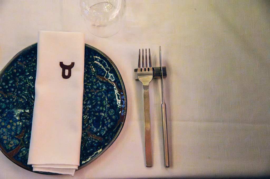 La puerta principal se realiza por el local derecho, destinado al restaurante, mientras que el lado izquierdo alberga la zona de bar. Ambos accesos reciben al visitante con barras monumentales, protagonizadas por esculturas de ramas de acero brillante