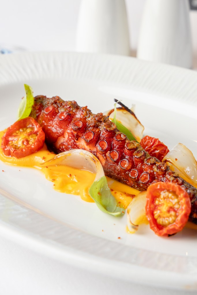 La cocina, dirigida por Fabián Cangas, se erige como un poema de sabores y texturas donde la materia prima brilla sin artificios. En la carta, que varía con las estaciones, se encuentran joyas como la ensalada de coliflor que sorprende con su frescura crujiente, el delicado sashimi de atún envuelto en brick dorado, el lenguado Miso Meunière que danza entre tradición y exotismo, o el bogavante gratinado que exhala riqueza y profundidad. Platos que acarician el paladar y la memoria, como el tartar de gamba roja con caviar, el surtido de frutos del mar y la pizzeta de trufa, desatan una sinfonía de sensaciones.