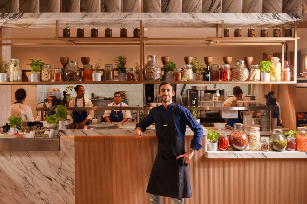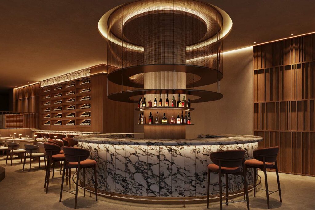 El nuevo local replica su esencia en materiales nobles —mármol, madera, dorados y terracota— que se funden para crear un halo cálido y orgánico. La luz natural entra a raudales por sus ventanales que enmarcan la vibrante ciudad, mientras el mobiliario de líneas suaves y acogedoras invita a perderse en el disfrute pausado. Cada rincón busca el equilibrio entre amplitud e intimidad para convertir cada visita en un ritual de elegancia y confort.