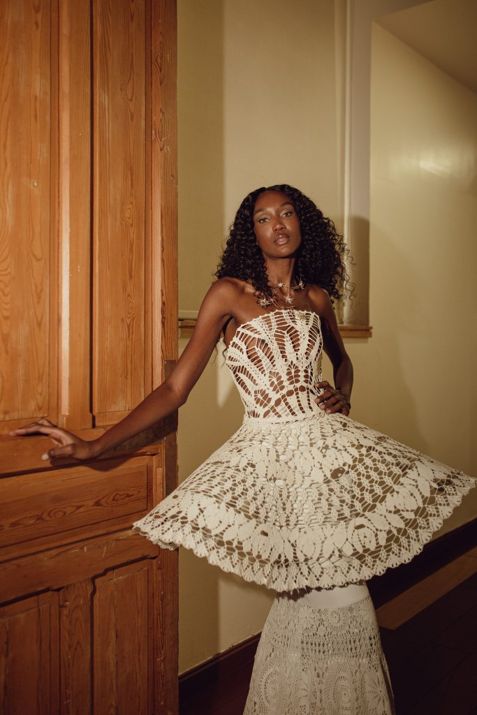 La colección —compuesta por diez diseños— utiliza el blanco como hilo conductor, conjugando técnicas de alta costura con procesos artesanales tradicionales. Cinco de las piezas se inspiran directamente en materias primas y oficios locales como la lana, el mimbre, la cerámica, el trenzado de sillas de enea o el bordado. Las otras cinco evocan la indumentaria tradicional de los pueblos de Valverde de Júcar, Almonacid del Marquesado, Sotos, Huete y Cuevas de Velasco, convirtiendo cada vestido en un relato silencioso.