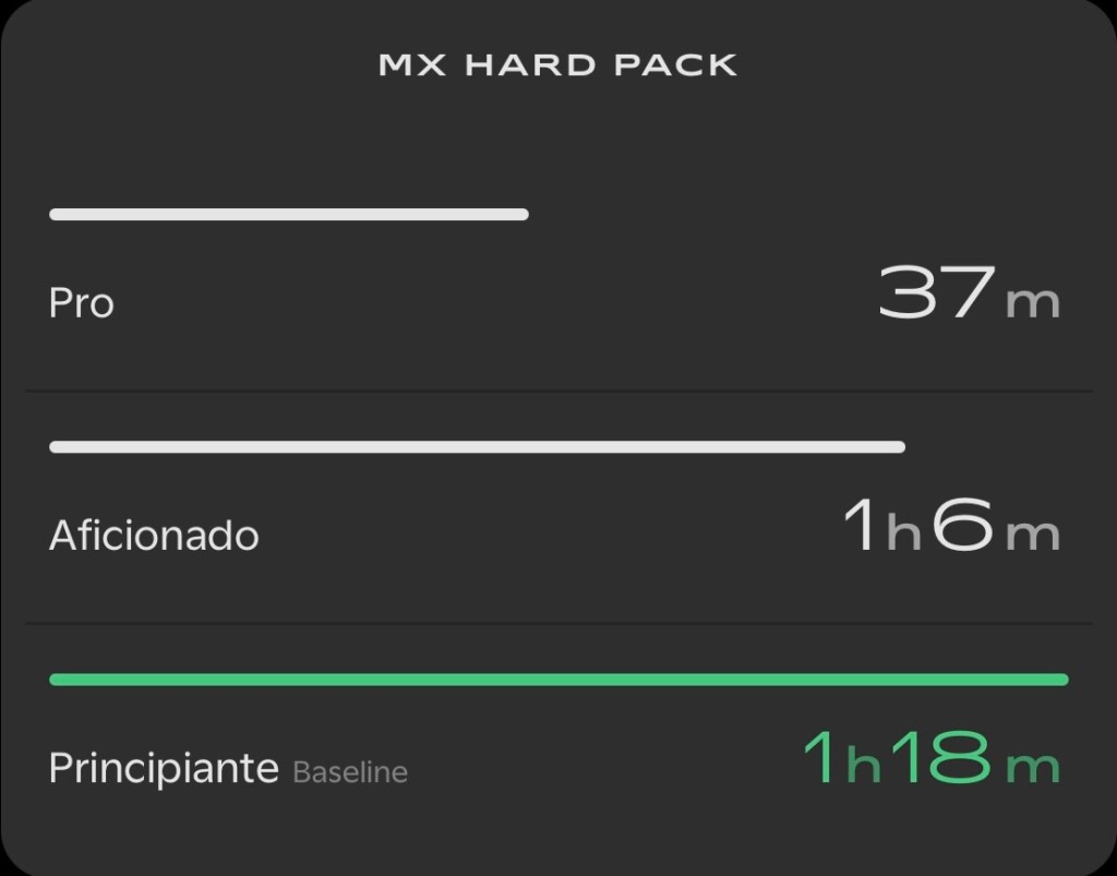 Desde la pantalla táctil del manillar puedes ajustar la potencia de 10 a 80 CV, el freno motor o la respuesta del acelerador. Puedes simular una 125, una 250 2T o una 450 4T simplemente cambiando los mapas. Y cuando acabas la tanda llega una de sus grandes ventajas: no hay aceite que cambiar, ni filtros que limpiar, ni embrague que ajustar. Solo conectas el cable y la moto descansa mientras tú sigues procesando lo que acaba de pasar.
