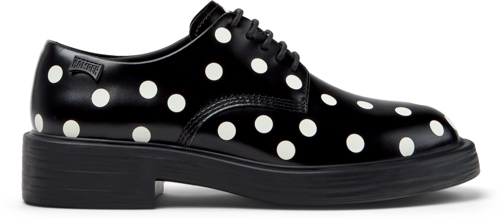 Inspirada en el folclore, la estética y el espíritu del flamenco, la colección captura el movimiento y la emoción de esta forma de arte a través de siluetas marcadas, contrastes en blanco y negro, y ricos detalles. El resultado es un calzado clásico y moderno con la característica firma de Camper. Dos estilos clave cobran protagonismo.